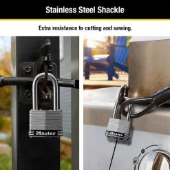 Stainless Steel Outdoor Padlock with Key, 2 in. Wide, 2-1/2 in. Shackle, 2 Pack by Master Lock