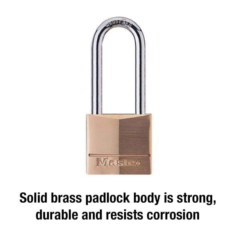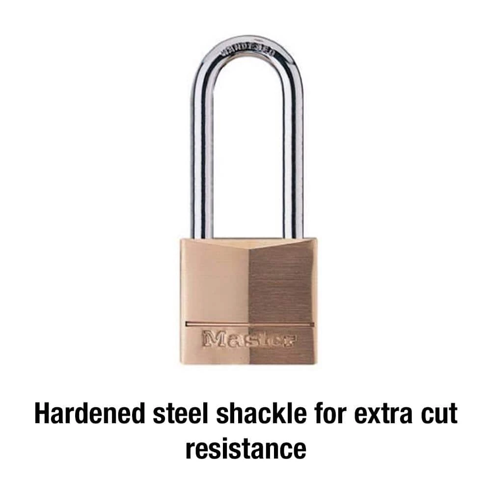 - Solid brass padlock features a hardened steel shackle for extra cut resistance
