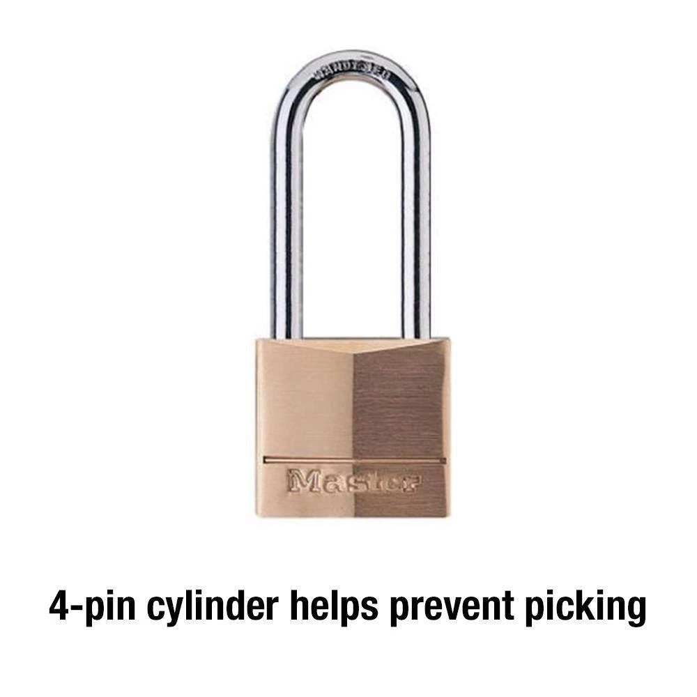 The Master Lock 140DLH Brass Outdoor Keyed Padlocks feature a 1-9/16 in. (40 mm). wide solid brass lock body that is strong, durable and resists corrosion. Lock shackle is 1/4 in. (6 mm.) diameter and is 2 in. (51 mm.) long and made of hardened steel, offering extra resistance from cutting and sawing. Keyed padlock four-pin cylinder prevents picking and the dual locking levers provide resistance against prying and hammering. This product is a 12-pack made up of 12 padlocks and 12 keys. Padlocks are keyed alike, each key opens all locks included. Master Lock’s Lifetime Guarantee provides peace of mind from a brand you can trust.