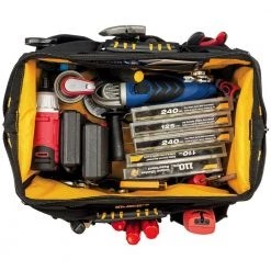 Features 18 pockets and an open, uncluttered interior space for maximum holding capacity. It’s built using premium 1680D Polyester weave for maximum strength, durability and moisture resistance. The reinforced bag bottom resists moisture, sagging, tearing and abrasions. The 9 interior pockets and 9 exterior pockets offer handy storage for the tools, meters and gear you use most often. Load it up and carry it with the reinforced handles or attach the padded shoulder strap for hands-free use.