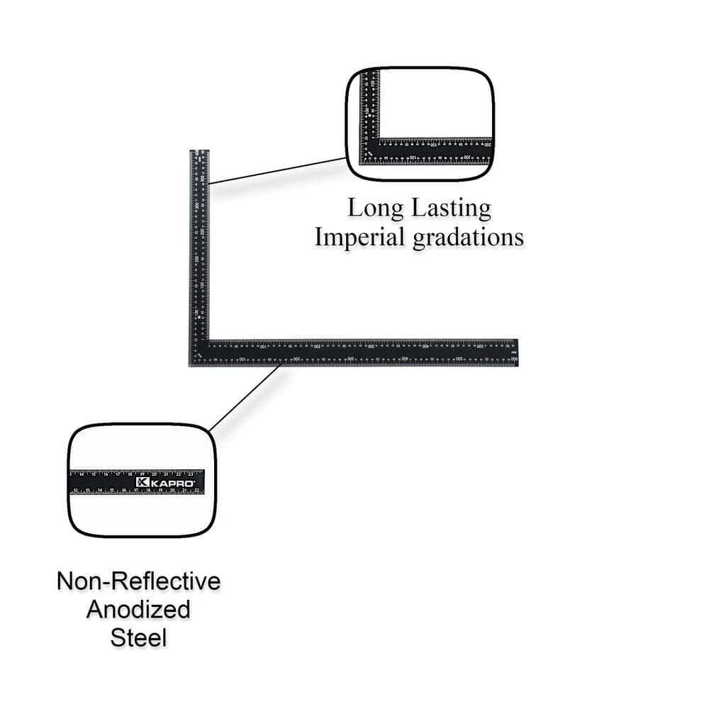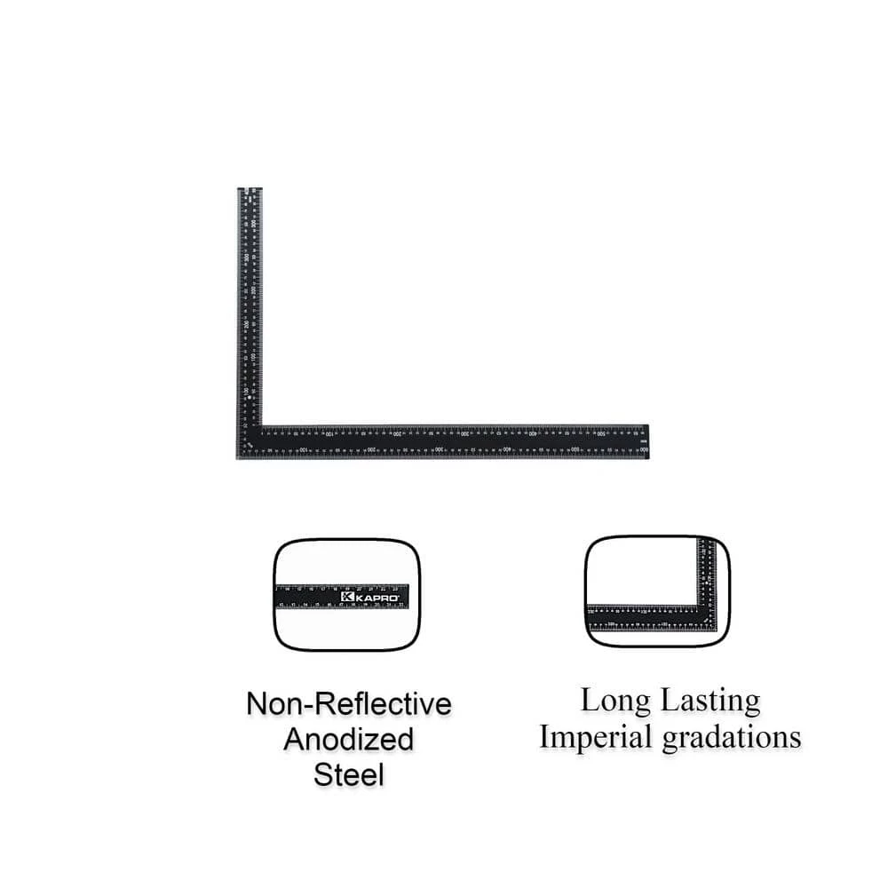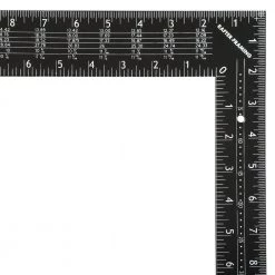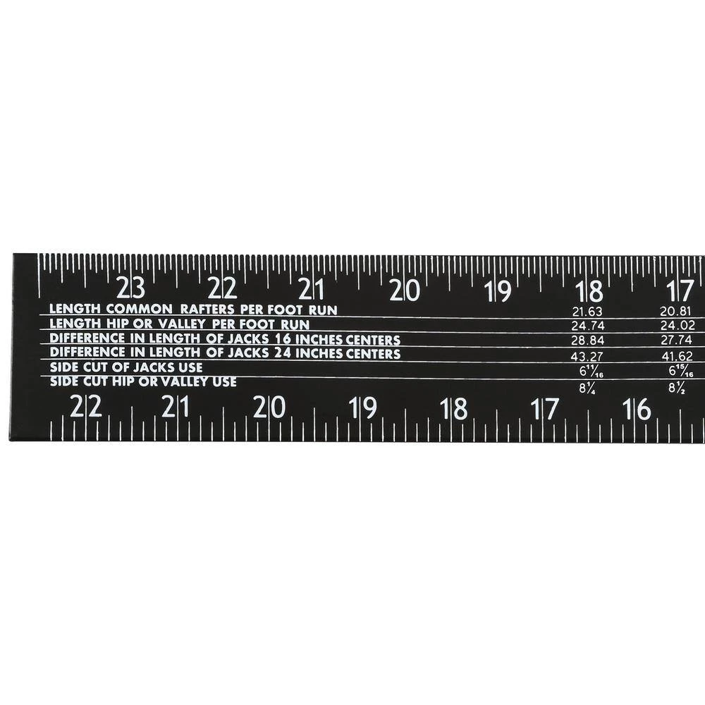 For precise measuring, add this durable Steel Carpenter Square to your toolkit. For easy reading, it offers a non-reflective black finish and white print. The convenient design features conversion and rafter tables. Sturdy, steel construction ensures lasting use.