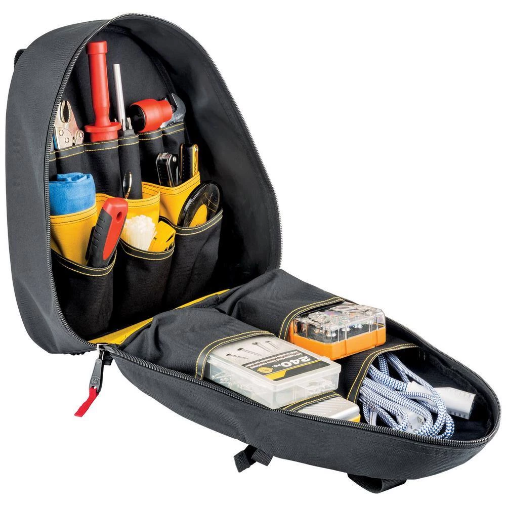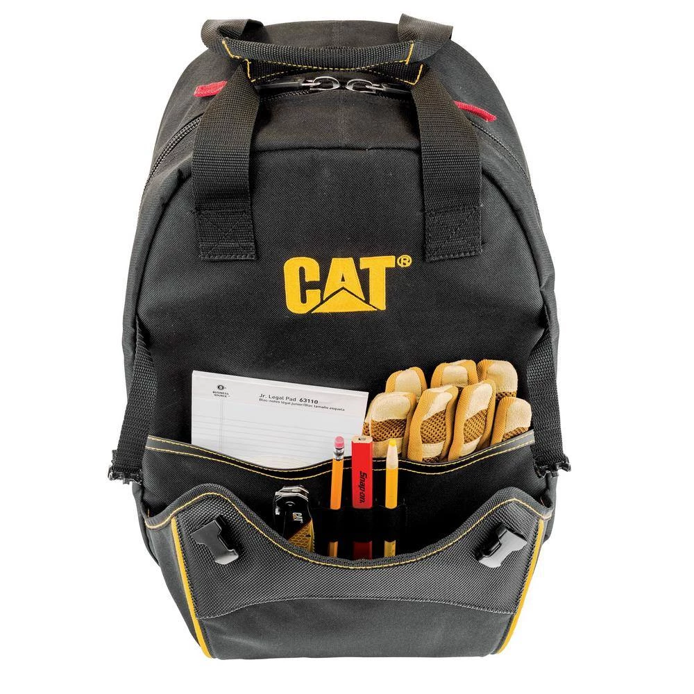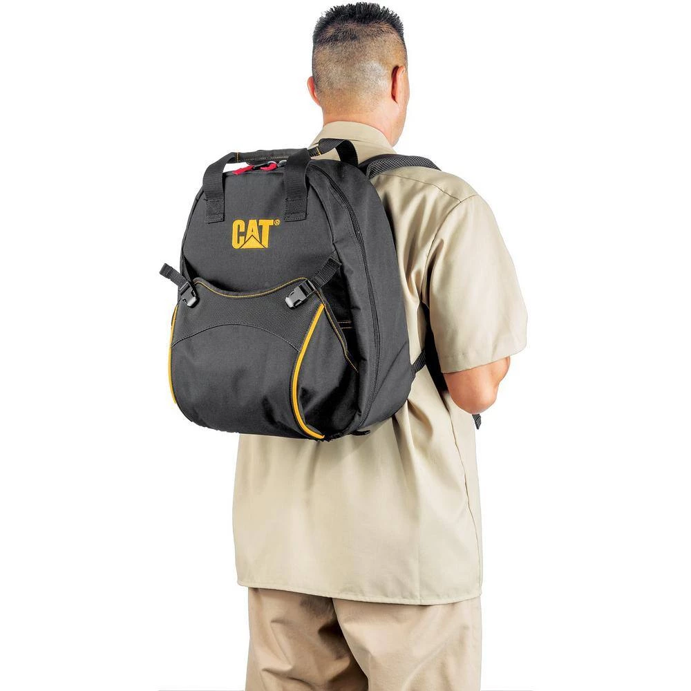The CAT 17 in. Tool Backpack features 18 pockets for ample tool and gear storage. It’s built using Heavy-duty 1200D polyester weave for maximum strength, durability and moisture resistance. A high-visibility inside floor helps you locate tools and parts quickly while the reinforced bag bottom resists moisture, sagging, tearing and abrasions. You’ll carry your loaded backpack safely and comfortably, thanks to thick back panel pads and padded adjustable shoulder straps. All pads are finished in breathable mesh fabric for increased ventilation. CAT tool bags and backpacks are built to meet the endless demands of harsh environments and hard-working pros who earn a living with tools. You’ll feel good knowing you’ve invested in a tool bag that will stay stronger, last longer and look good doing it. With heavy-duty materials and rugged construction, CAT tool bags and backpacks protect your tool investment every minute of your workday. Go ahead and stuff them to the gills with the tools and gear you need there built to take the abuse.