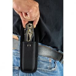 - 10 IN 1 TOOL: Includes long nose spring handle pliers, wire cutters, crimper, line locking blade with a serrated edge, saw blade, file, bottle opener, Phillips and slotted screwdrivers, and a glass breaking tool; all cutting blades feature a safety liner lock; belt pouch for easy access and every day carry