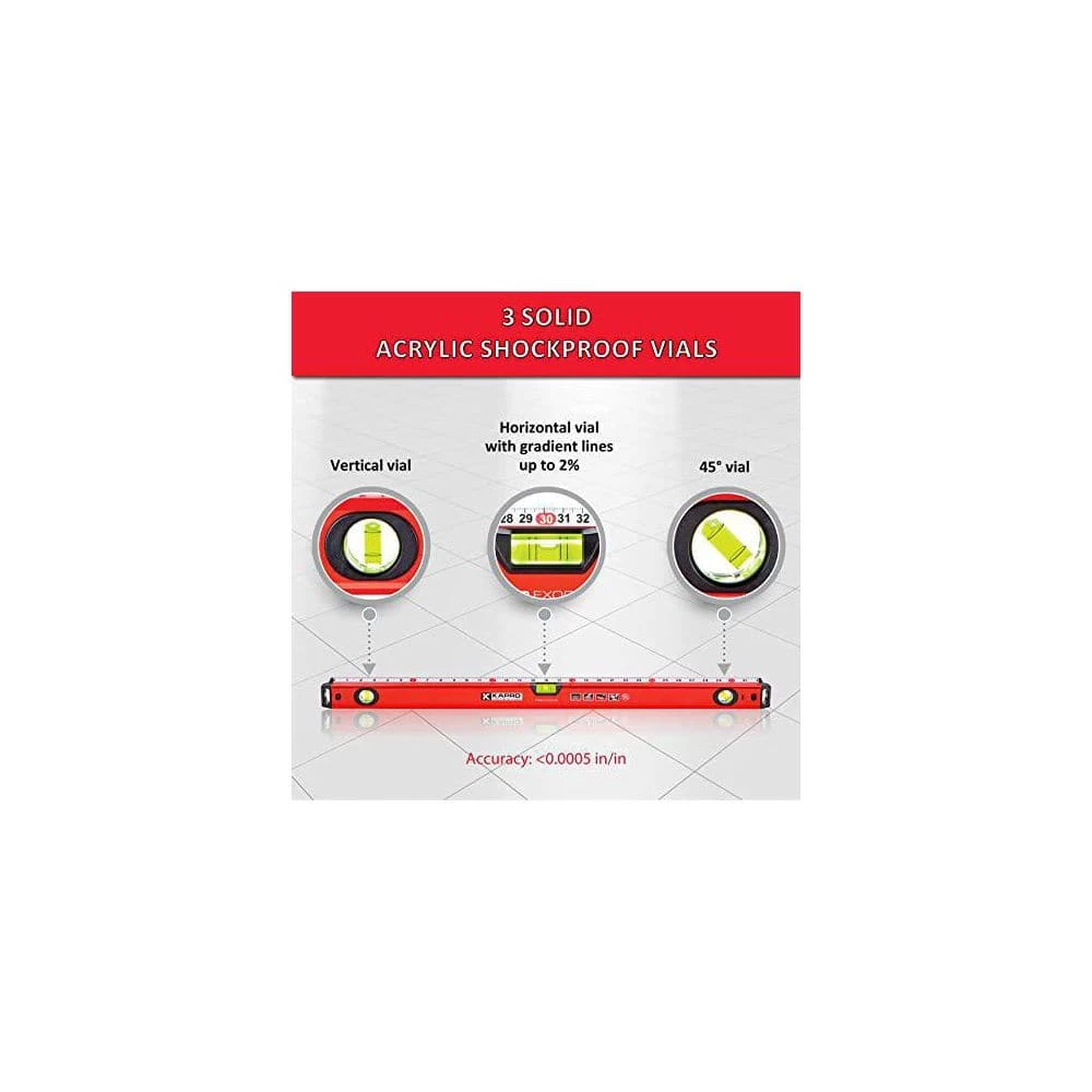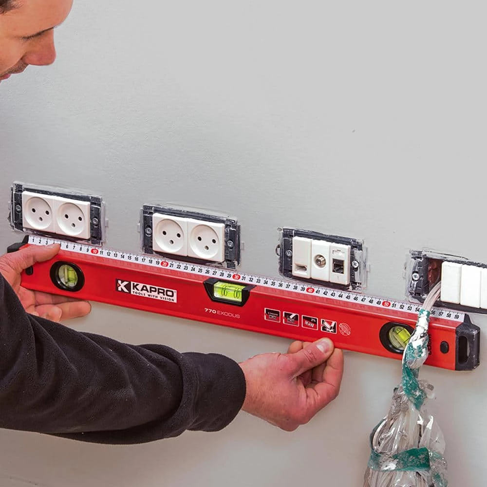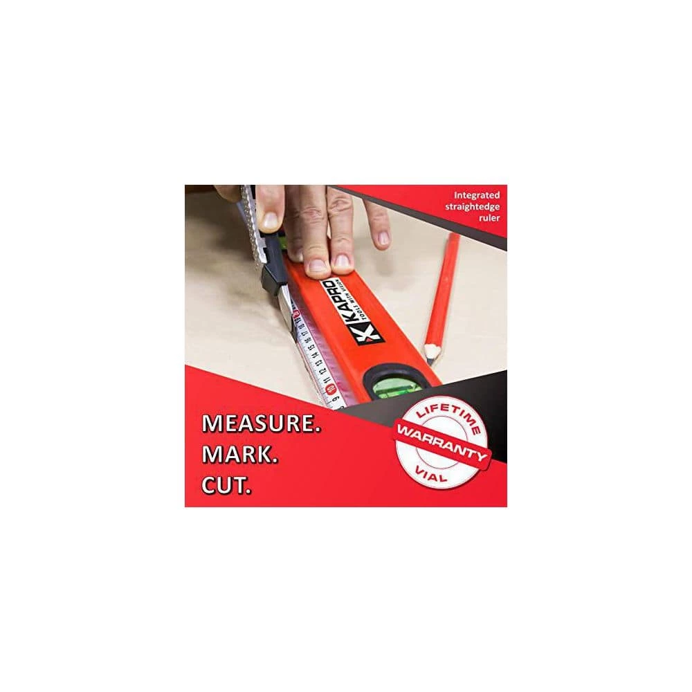 The Kapro 770 Exodus features 3 vials, a sturdy ruler, and straightedge to help you level, measure, mark, and cut with only one tool. Our Box Level features three shock-resistant acrylic vials for clear and accurate horizontal.The wall grip feature allows for single-handed use and is ideal for carpentry, drywall, and all finishing and design projects. Our box level features a sturdy and robust build and includes shock absorbing rubber end caps.At Kapro, we reimagine precision tools and accessories for professional craftsmen to weekend warriors while setting high standards by driving innovation in our designs.
