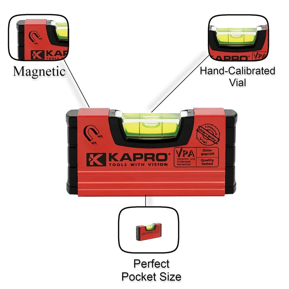 This durable level fits easily in your utility drawer, tool box, glove compartment or camper so it is always within reach. The solid acrylic block vial provides a highly accurate read. This is a perfect tool to help you while you are redecorating or minor household improvements. The magnet is hidden inside the read surface and will provide a secure hold.