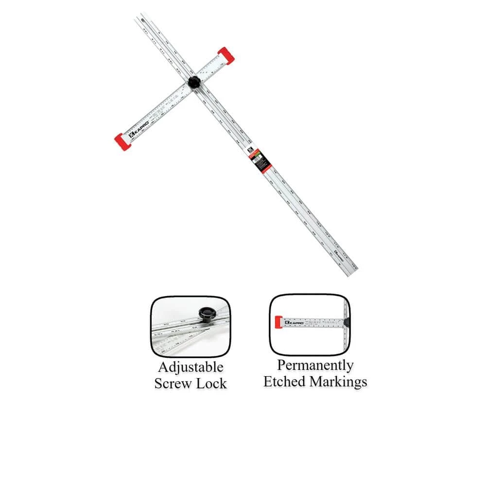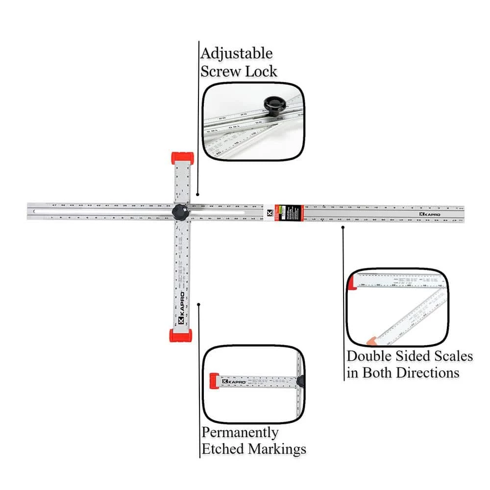 The Kapro 317 Adjustable T-Square is designed with a double edged, aluminum ruler with an anodized finish. It’s ABS end caps with a revolutionary hands-free holding ledge won’t slip when placed or slide on an edge of a surface. This T-Square features a sliding head that easily adjusts to any angle and a strong screw lock that keeps the head in any position that you set. The 317 also folds for easy carrying and storage.The printed scale along its profile and etched angle markings in imperial 1/16″ and 1/8″ allow for multiple applications including technical drafting, drywall, interior design, and home improvement projects.At Kapro, we reimagine precision tools and accessories for professional craftsmen to weekend warriors while setting high standards by driving innovation in our designs.