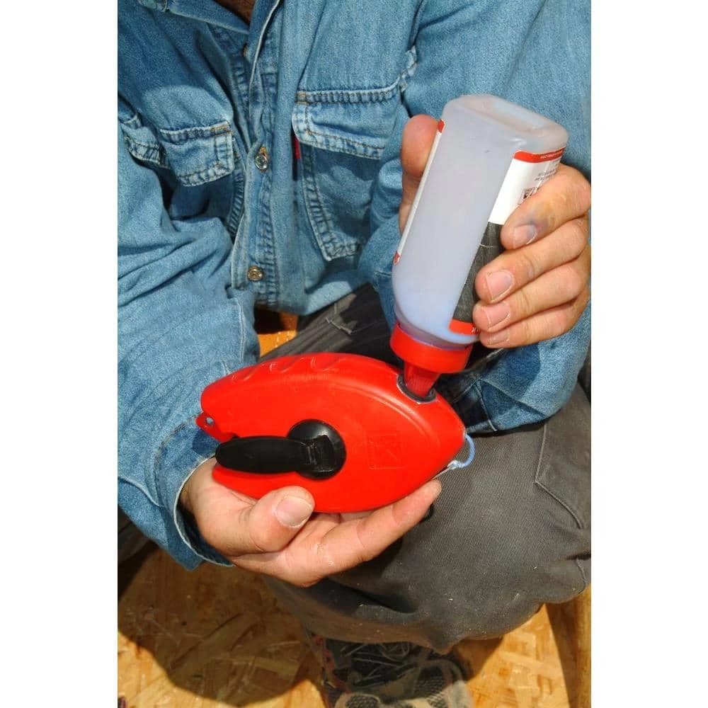 This classically designed chalk line has a durable grip body. Packaged as a set with a 4oz blue chalk bottle. Contains easy refill mechanism to avoid spillage.