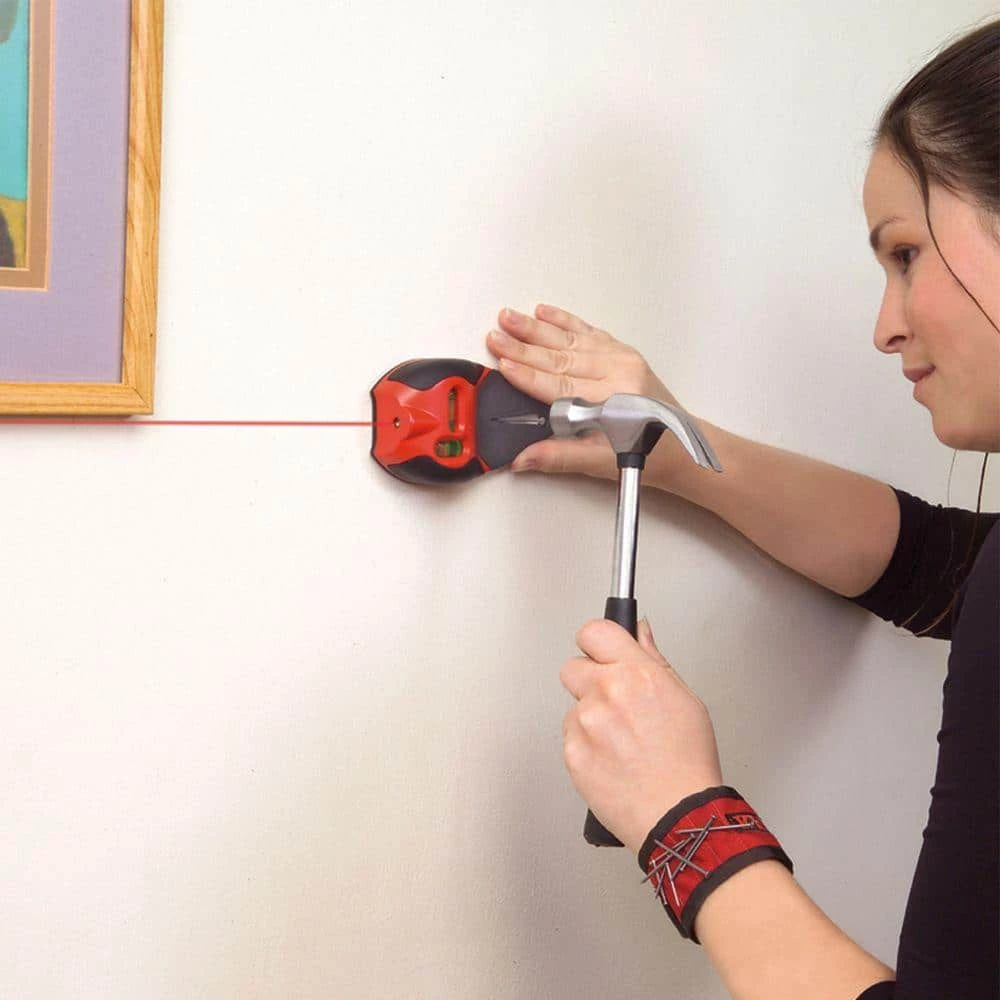 - Includes a magnetic wristband for holding nails and screws