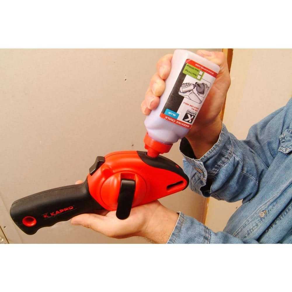 Chalk lines are designed to give a straight line which is marked as a guide for a host of building applications, by snapping the taut line to release the chalk. They are ideal for marking long lines needed for large layout jobs. This product is a high quality Chalk Line product, smart with integrated line level and x6 rewind speed with retractable line level. No spill refill docking Point.